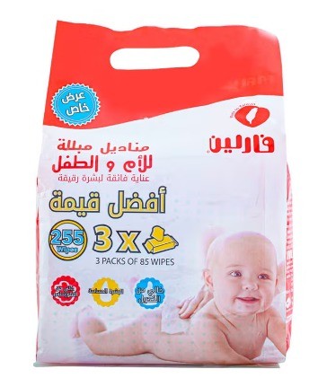 فارلين مناديل مبللة للأطفال، 3*85 منديل